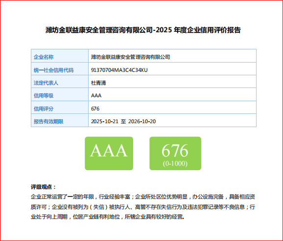 信用等级报告有效期限:2025年10月21日--2026年10月20日
