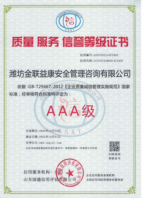 潍坊金联益康安全管理咨询有限公司: